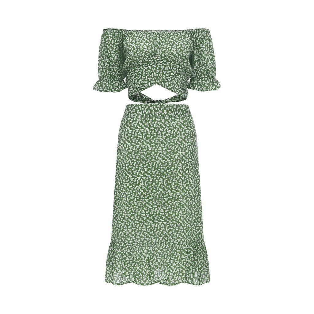 Startsida Startsida Kläder och accessoarer Damkläder Damkjolar Dammidikjolar Blommig crop top och kjol för kvinnor B1099