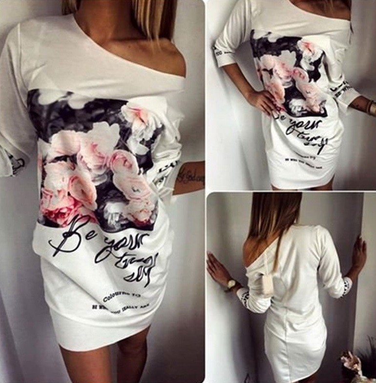 Vacker ledig miniklänning med blommönster.