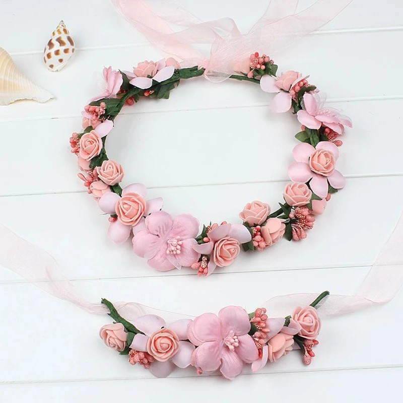 • Innehåll i förpackningen: 1× blomsterkrans för hår med band