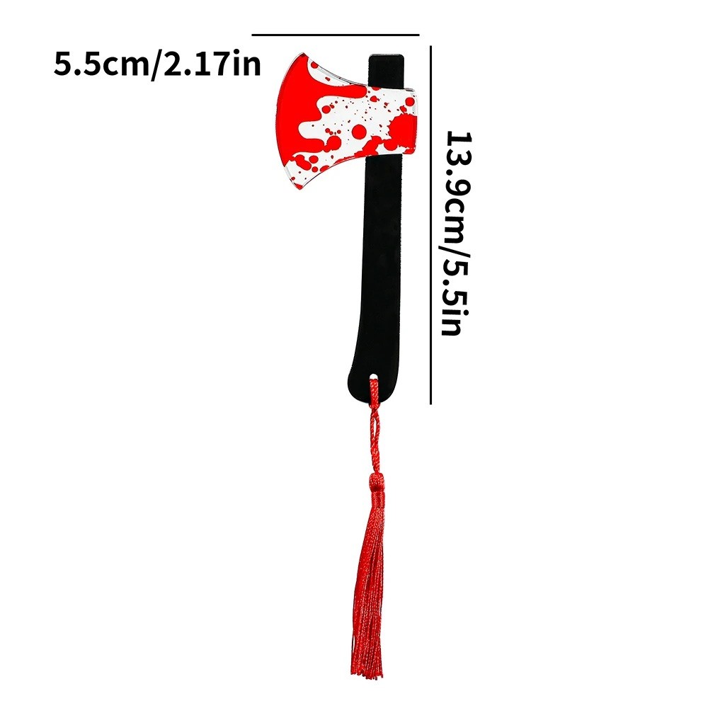 Bokmärke 15 cm skräckmotiv yxa med tofs tematisk bokmärke för skräckälskare