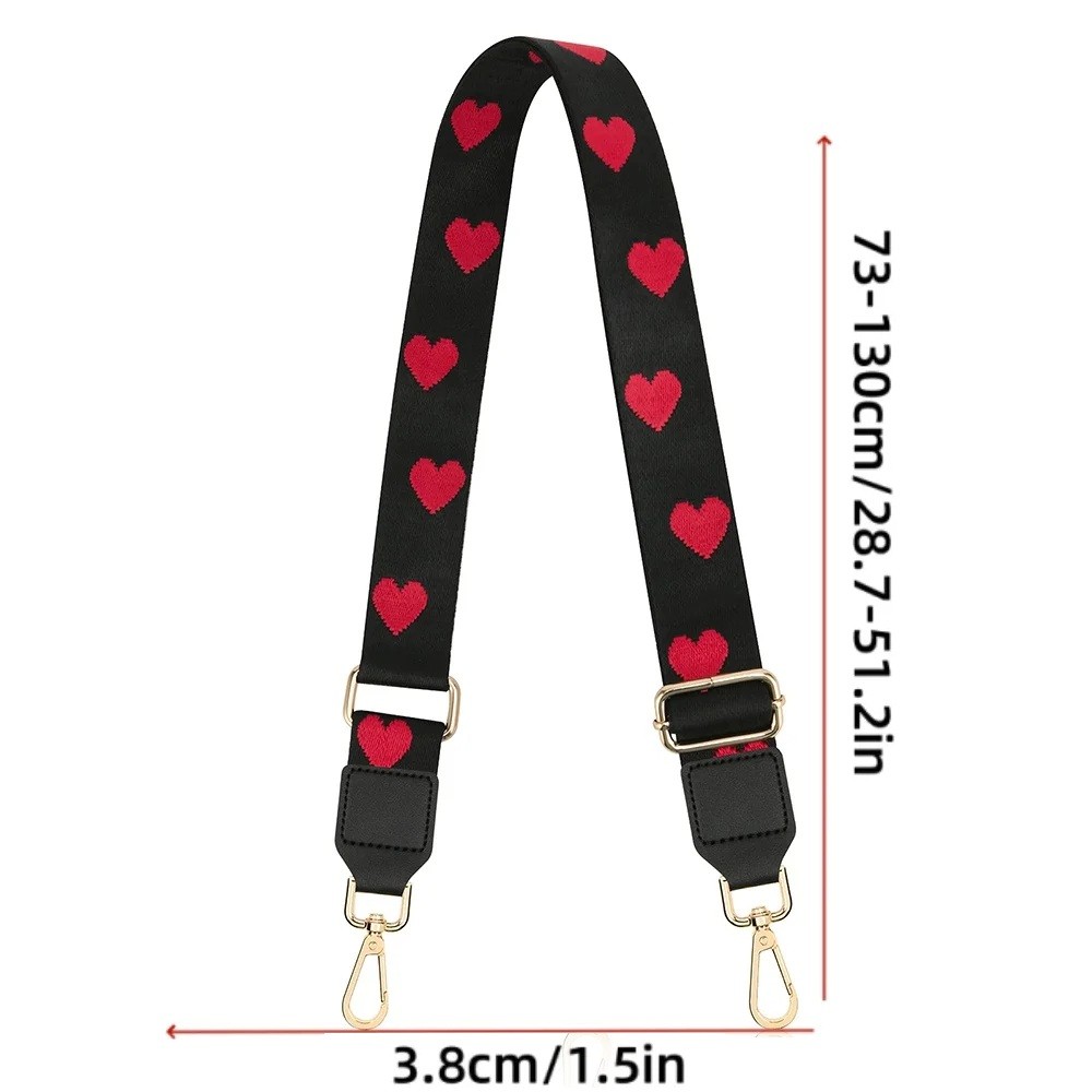 Bred justerbar axelrem till handväska svart 73–130 x 3,8 cm Motiv av röda hjärtan Axelrem i textil till väska Ersättnings crossbody