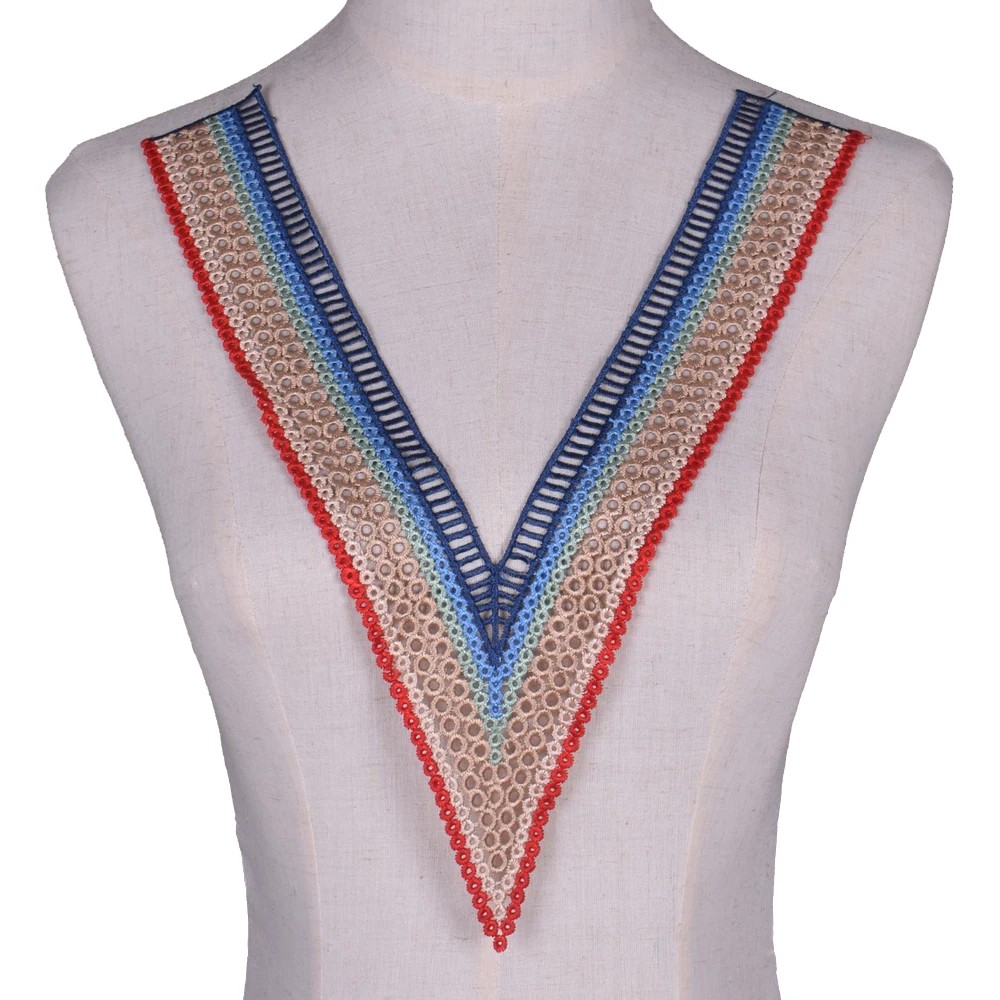 Broderad spets till V-ringning 24 x 35 cm Polyester dekorativ applikation för sömnad dekoration av klänningar blusar kläder textil dekoration