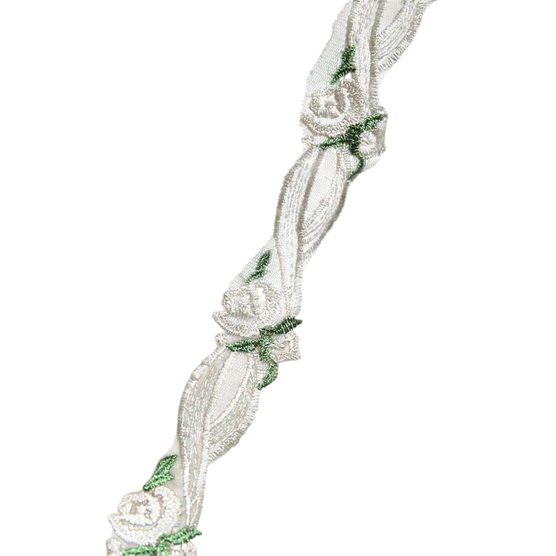 Broderad spetsband med blommotiv är en elegant dekorativ textilkomponent som är lämplig för en mängd olika användningar inom sömnad, dekoration av kläder eller tillverkning av dekorationer. Den fina blommiga broderingen ger spetsbandet en romantisk och stilfull look, vilket gör det perfekt för bröllopsdekorationer, modeaccessoarer och kreativa DIY-projekt. Materialet är tillverkat av polyester, vilket säkerställer god hållbarhet, låg vikt och enkel hantering vid arbete. Tack vare sin flexibilitet kan spetsbandet enkelt sys fast eller användas som en dekorativ applikation på olika typer av textilier. Denna dekorativa komponent kan ge produkter en mjuk, elegant och professionell look.