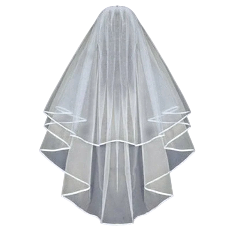 Brudslöja 78 cm Dubbelskiktad Tyll Med Kam Kantad Med Band Vit Ivory Fin slöja till brudklänningar