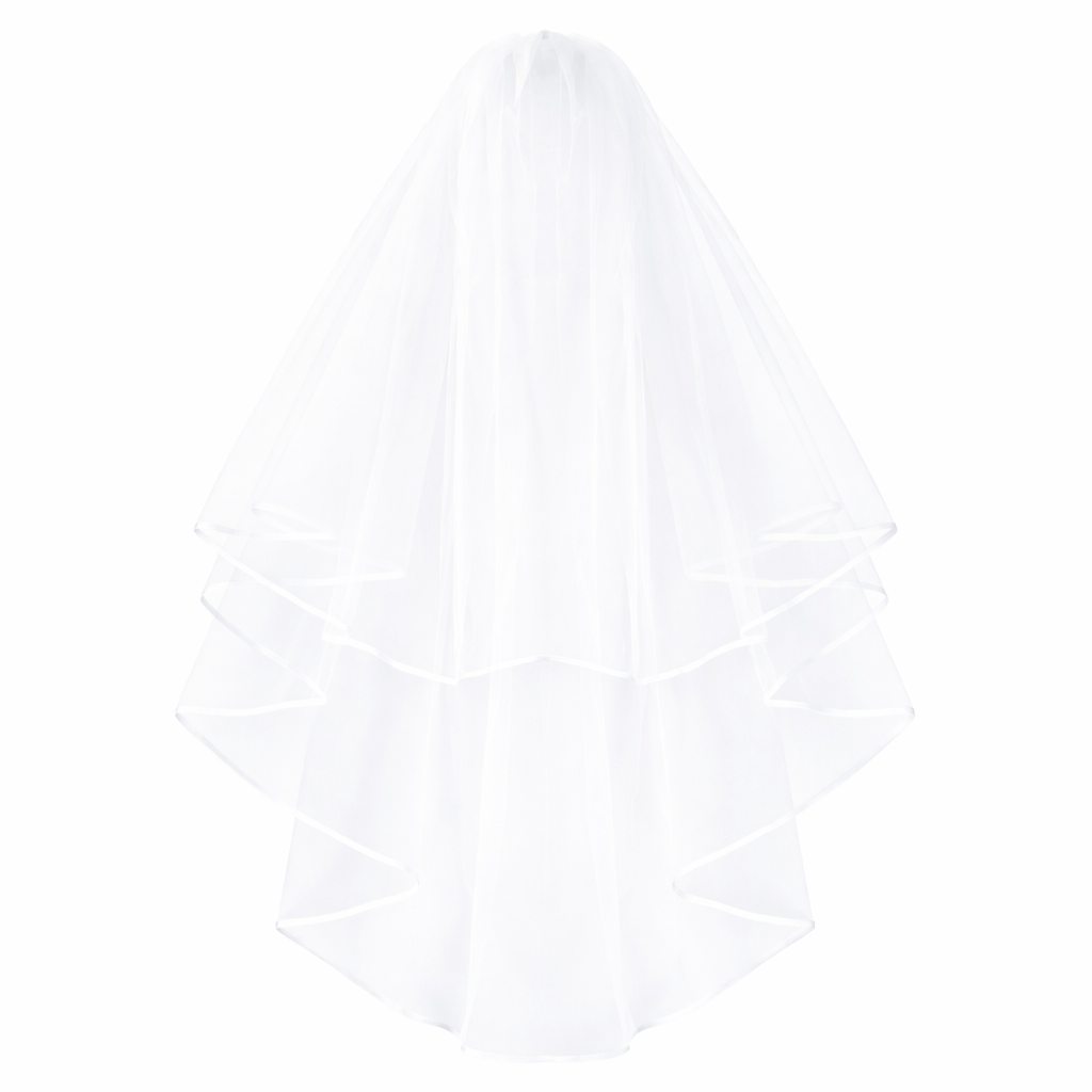 Elegant brudslöja i dubbelskiktad tyll med kam och bandkantning. Fin och lätt accessoar för bröllop i vit eller ivory färg. Fullständig beskrivning