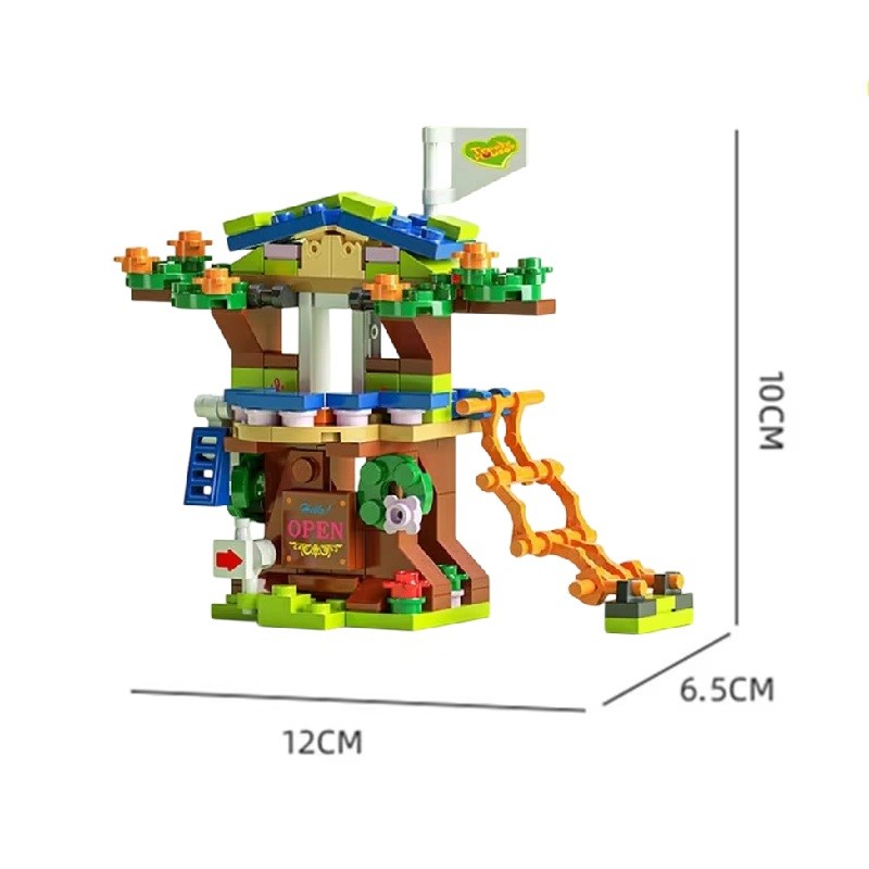 Byggsats trädhus 12 x 6,5 x 10 cm Set 152 st Block med tegel Klättringselement och rutschkana Kreativ modell för barn som present