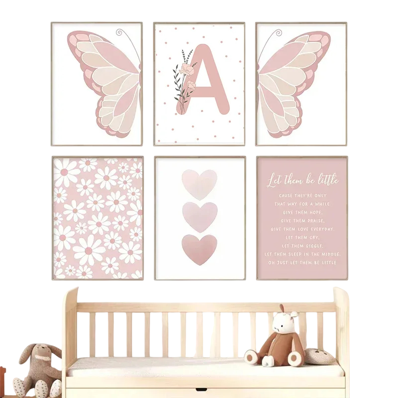 Elegant väggdekoration i canvas med ett fint motiv av fjärilsvinge ger barnrummet en romantisk stil, en trevlig atmosfär och ett modernt utseende. Fullständig beskrivning