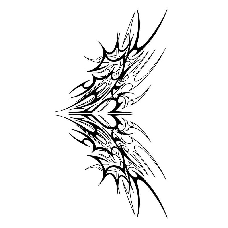 Elegant tillfällig tatuering med taggmotiv, perfekt för mage, byst, rygg eller midja. Vattentät och långvarig upp till 15 dagar, enkel applicering, storlek 18 x 11 cm. Fullständig beskrivning