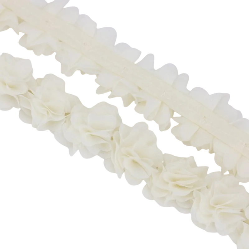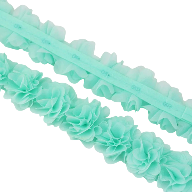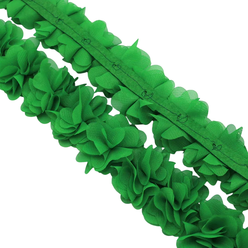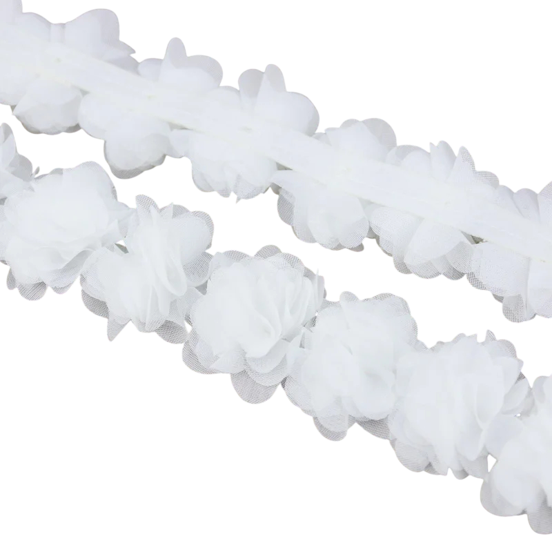 Chiffongspets tyg är ett fint och elegant textilmaterial lämpligt för sömnad, dekoration och olika kreativa projekt. Tack vare sin lätta och luftiga struktur ger den ett mycket fint intryck och ger produkterna ett romantiskt utseende. Detta tyg är idealiskt för dekoration av kläder, bröllopsdekorationer eller olika textiltillbehör. Dess dekorativa karaktär gör den också perfekt för kreativt skapande och designprojekt.