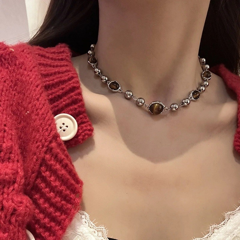Startsida Startsida Smycken och klockor Damsmycken och klockor Damchokers Choker i kirurgiskt stål Justerbar halsband Bruna pärlor Naturlig retro look Dam mode smycke