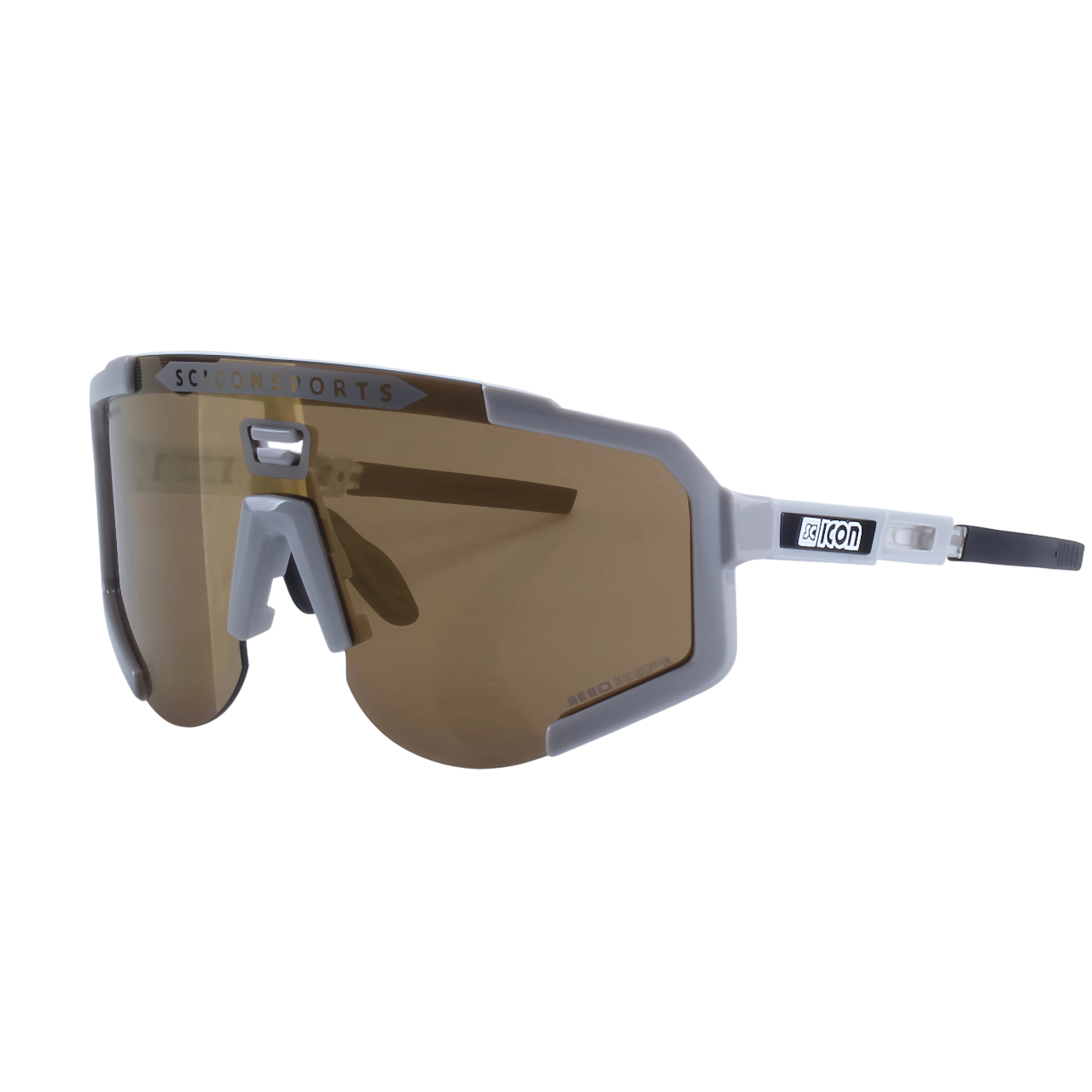 Sportglasögon med UV400-skydd, lätt TR-90-ram och hållbara linser. Grå bågar lämpliga för både MTB och landsvägscykling. Fullständig beskrivning