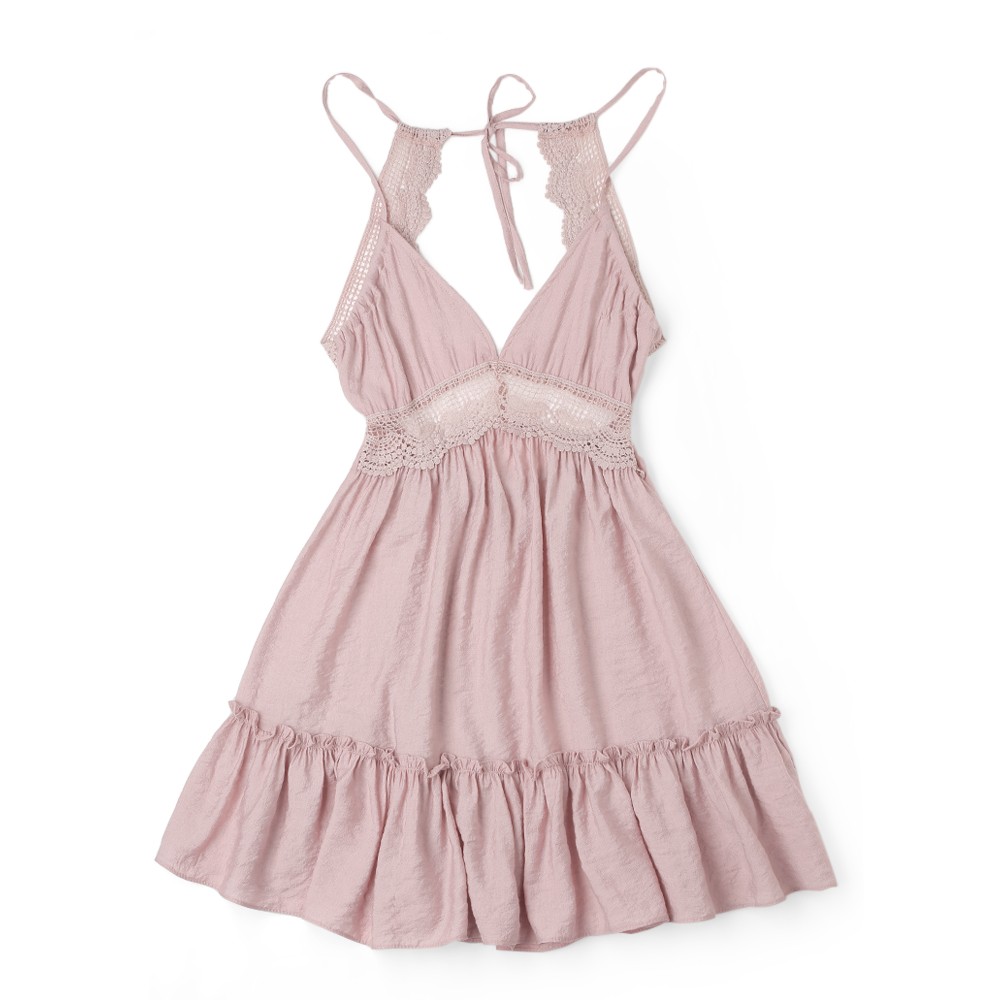 Damklänning med spetskant och öppen rygg.