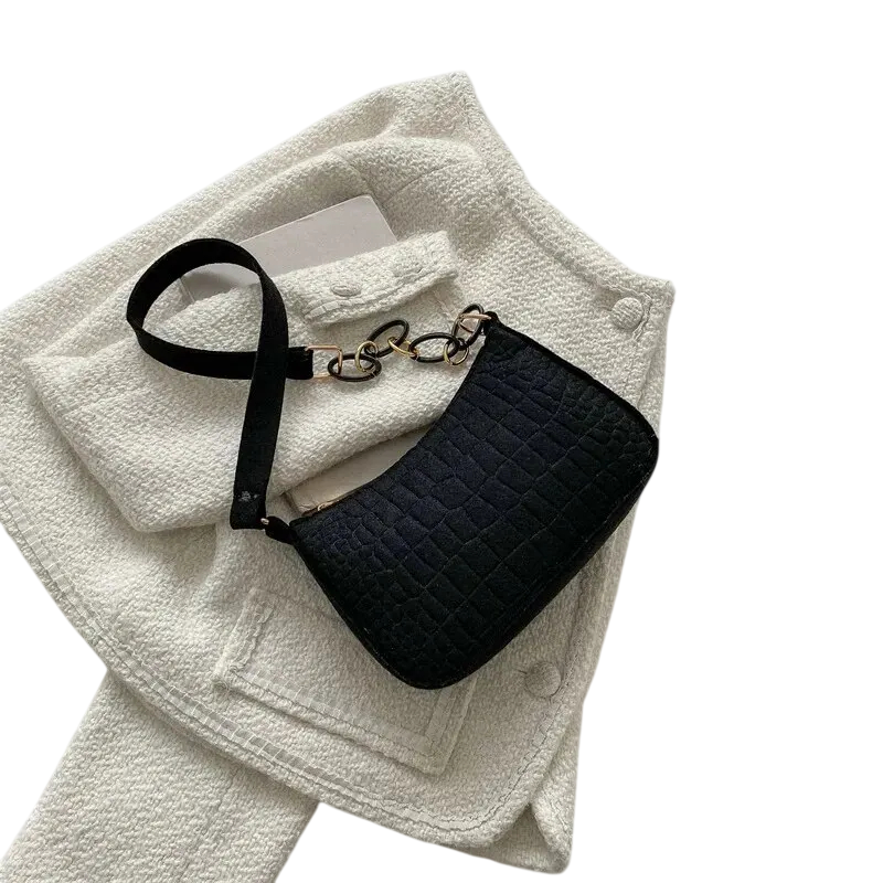 Retro damväska i filz erbjuder lätt vikt, avlång form och praktiska mått som passar för både stad och fritidsbruk. Fullständig beskrivning