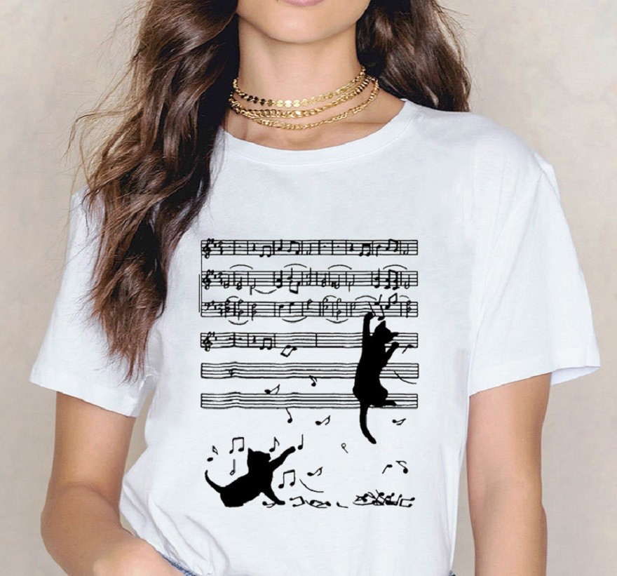 Dam T-shirt med musikmotiv