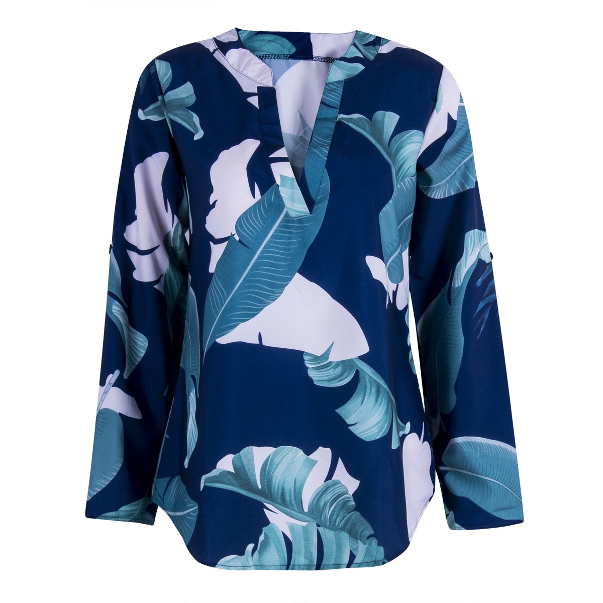 Den har långa ärmar som går att kavla upp.