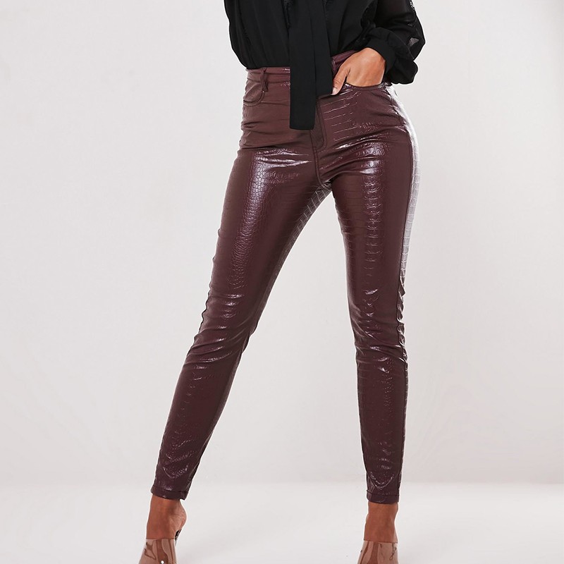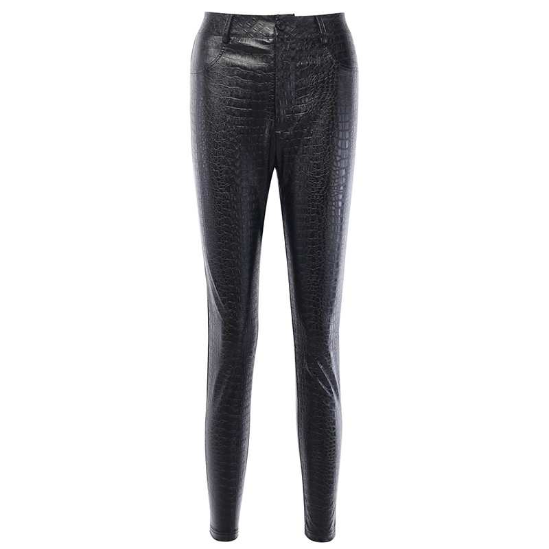 Startsida Startsida Kläder och accessoarer Damkläder Dambyxor Dambyxor i konstläder med mönster