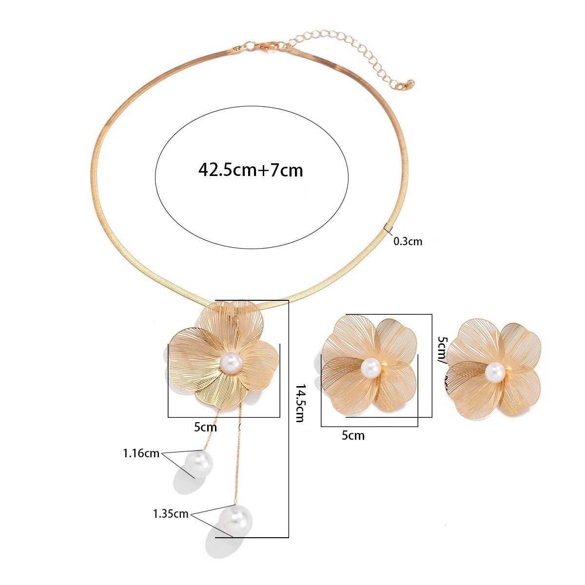 Elegantiskt dam choker set med blommönster och perldetaljer, justerbar längd på kedjan 42,5 cm, örhängen 5x5 cm, perfekt för alla tillfällen. Fullständig beskrivning