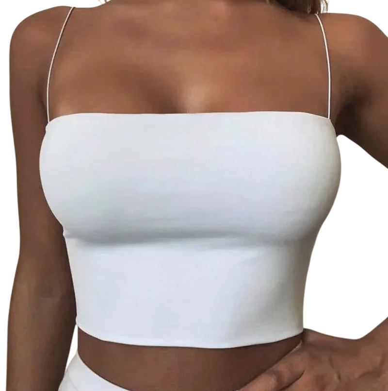 Startsida Startsida Kläder och accessoarer Damkläder Damlinnén Damernas crop top Tunna axelband U-ringning Enfärgad kort topp av polyester och spandex Elastisk sommartröja