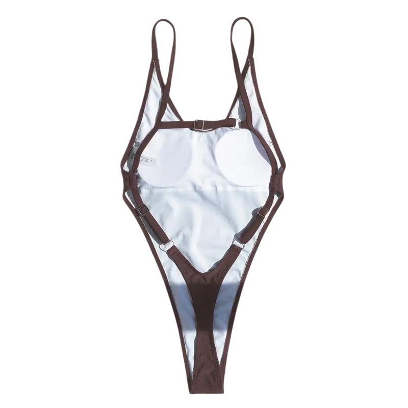 Damernas enstyckade baddräkter Tunna axelband U-ringning Enfärgad Spandex Polyester Elastiska eleganta sommarbaddräkter