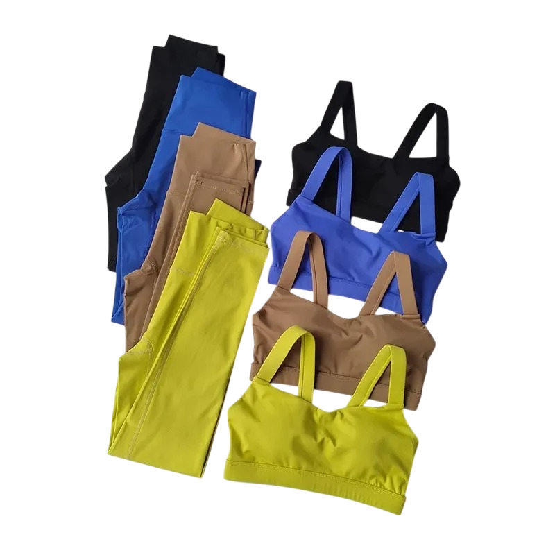 Damernas sportset med leggings och sportbh i nylon. Perfekt för fitness, träning eller fritid, bekväm och elastisk material. Fullständig beskrivning