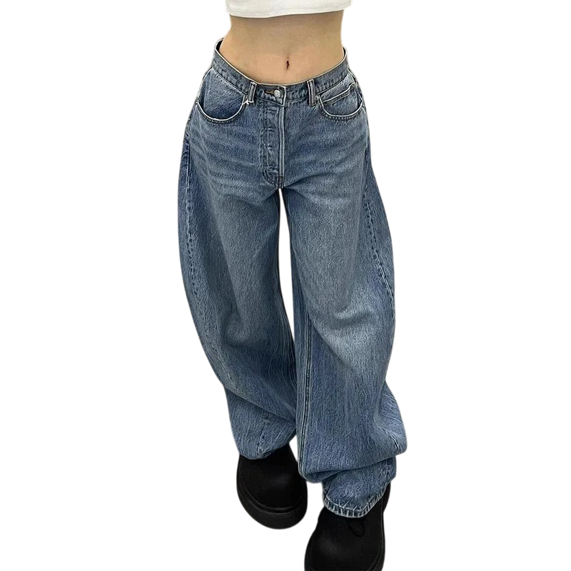Dessa dam blå jeans med tryck och fickor är det perfekta valet för kvinnor som vill sticka ut ur mängden och samtidigt njuta av komfort. Det lösare snittet gör det enkelt att kombinera med en crop top, hoodie eller oversized t-shirt. Tack vare kvalitetsbearbetningen och det hållbara materialet kommer byxorna att behålla sitt utseende även vid regelbunden användning. Om du letar efter bekväma avslappnade byxor med ett iögonfallande design, kommer denna modell att komplettera din moderna garderob perfekt.