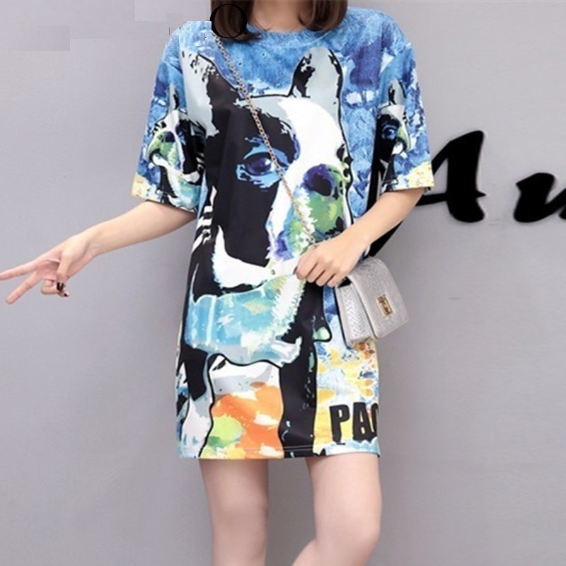 Damklänning med komiskt tryck