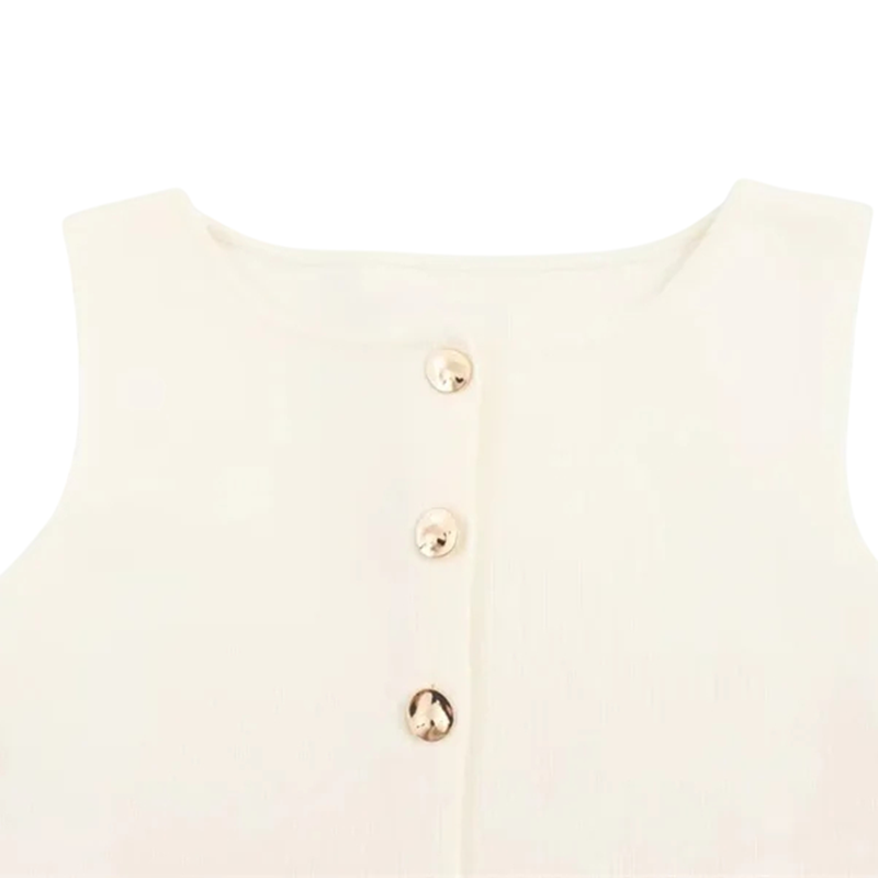 Stilren beige damväst med O-ringning och knäppning med knappar. Lätt polyester material garanterar komfort och tidlös stil. Fullständig beskrivning
