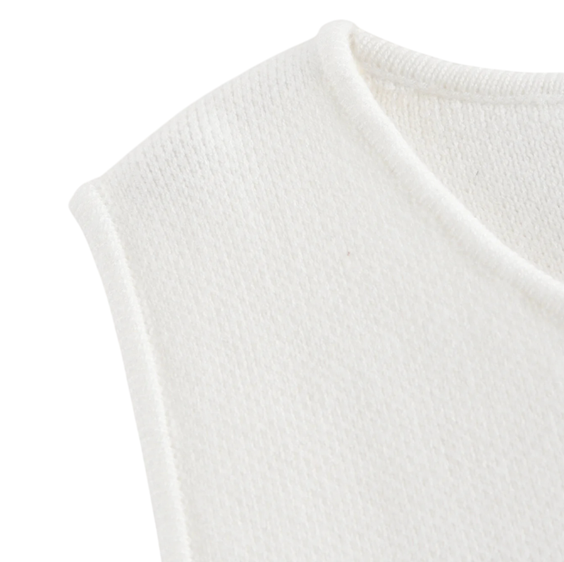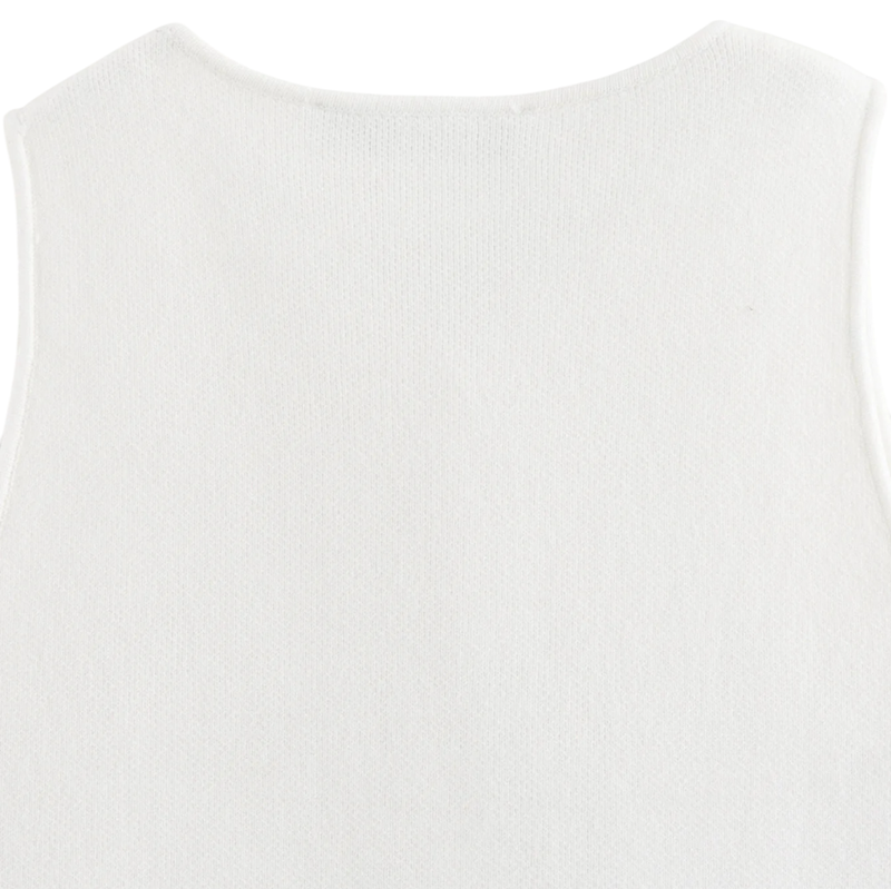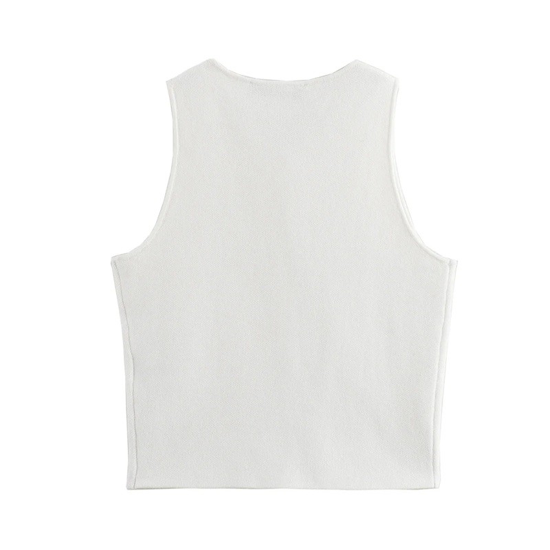 Stilren dams väst med rund halsringning och knäppning med knappar. Lätt polyester material och bröstfickor för en elegant look. Fullständig beskrivning
