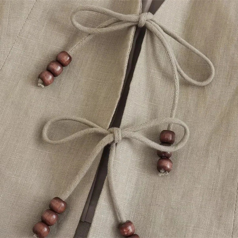 Stilren damväst med V-ringning och snörning. Lätt polyester material och enfärgad design för elegant och avslappnad stil. Fullständig beskrivning