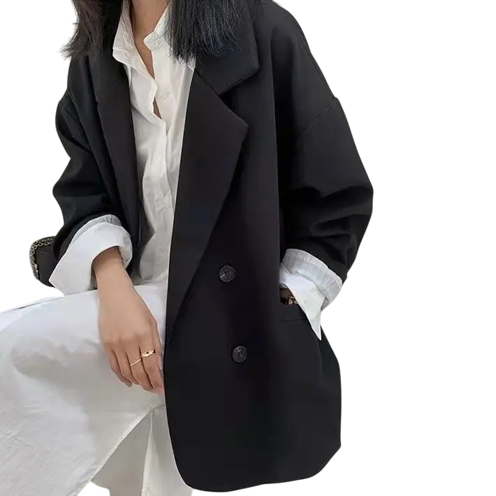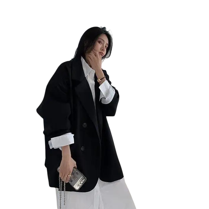 Detta dams elegant sako förenar elegans, komfort och tidlös stil. Tillverkat av högkvalitativ polyester, är det motståndskraftigt mot skrynklor, lätt att underhålla och behåller sin form även efter frekvent användning. Tack vare den klassiska kragen och knäppningen med knappar ger det ett professionellt och elegant intryck, vilket gör det till ett perfekt val för kontoret, sociala evenemang och vardagsbruk. Praktiska fickor ökar funktionaliteten och ger samtidigt sako ett stiligt utseende.