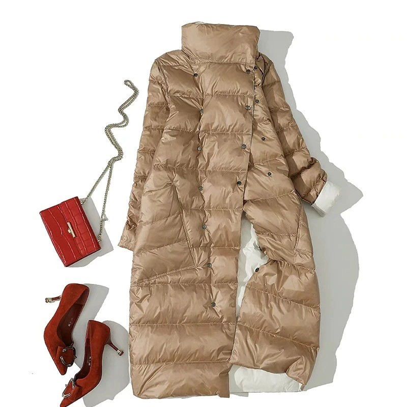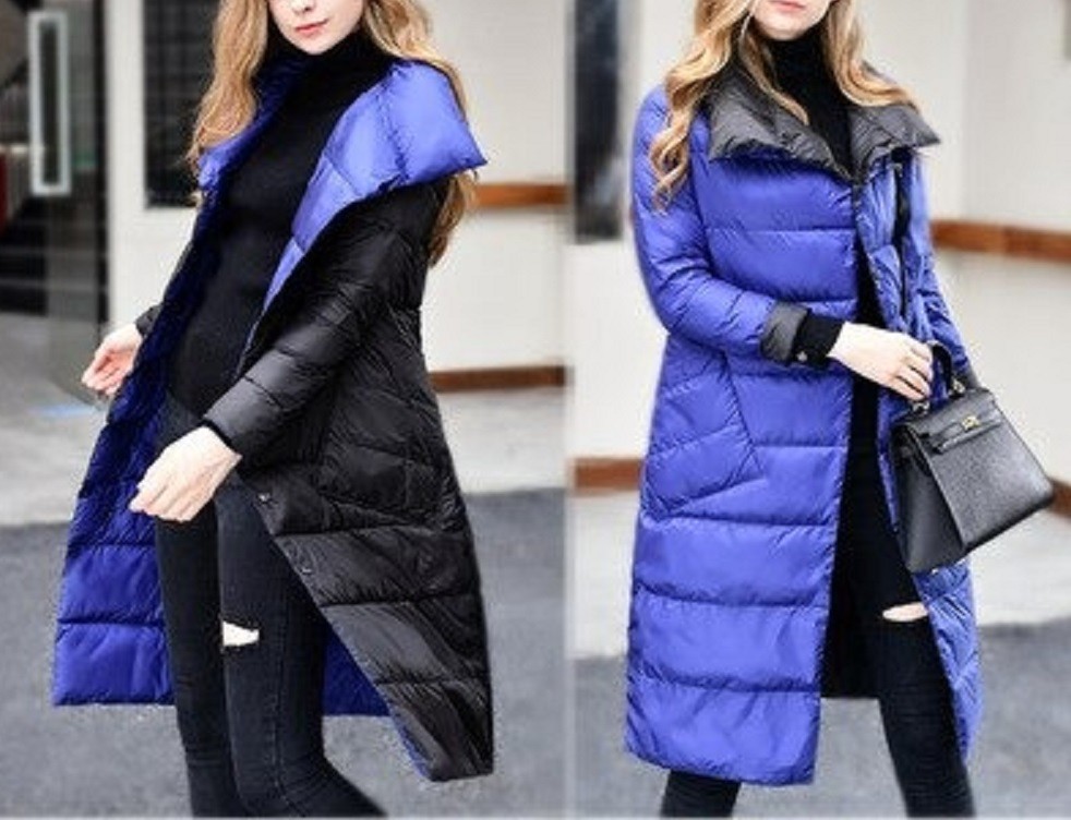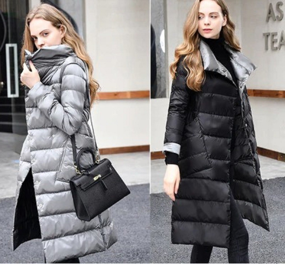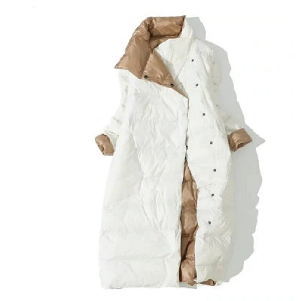 Dams lång dunjacka vändbar