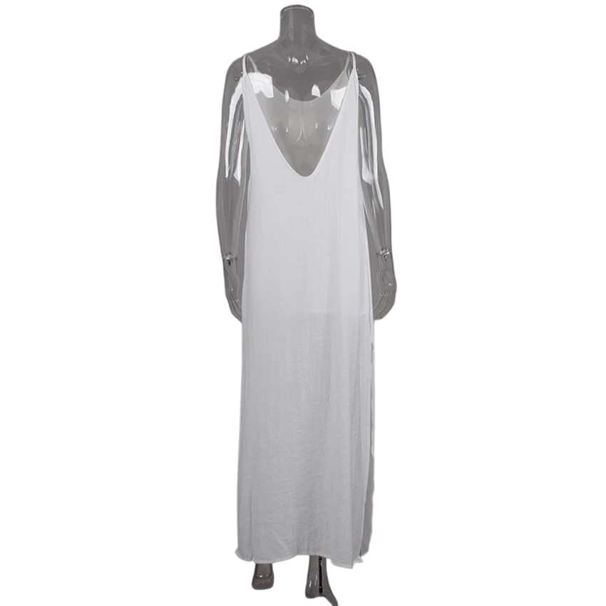 Dams lång nattklänning med V-ringning Elegant lös klänning med underkjol och slits Polyester Nylon Rayon Olika färger
