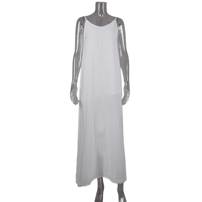 Elegant lång nattklänning med underkjol, V-ringning fram och bak samt slits i lätt polyester, nylon och rayon för komfort och stil. Fullständig beskrivning