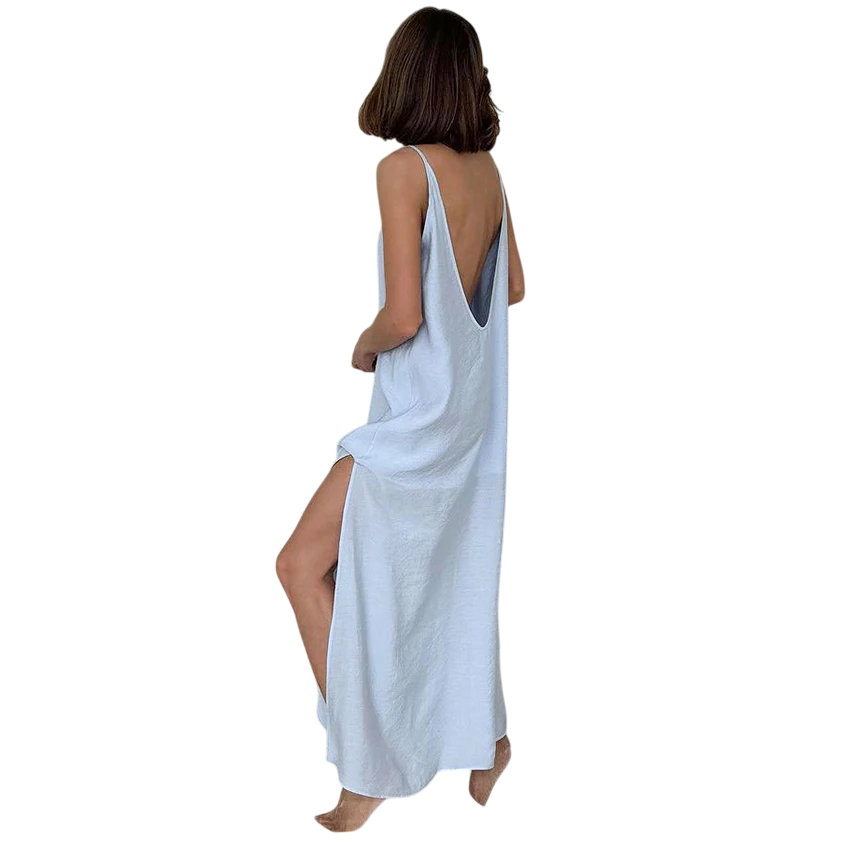 Startsida Startsida Kläder och accessoarer Damkläder Dam nattkläder Dam nattlinnen Dams lång nattklänning med V-ringning Elegant lös klänning med underkjol och slits Polyester Nylon Rayon Olika färger