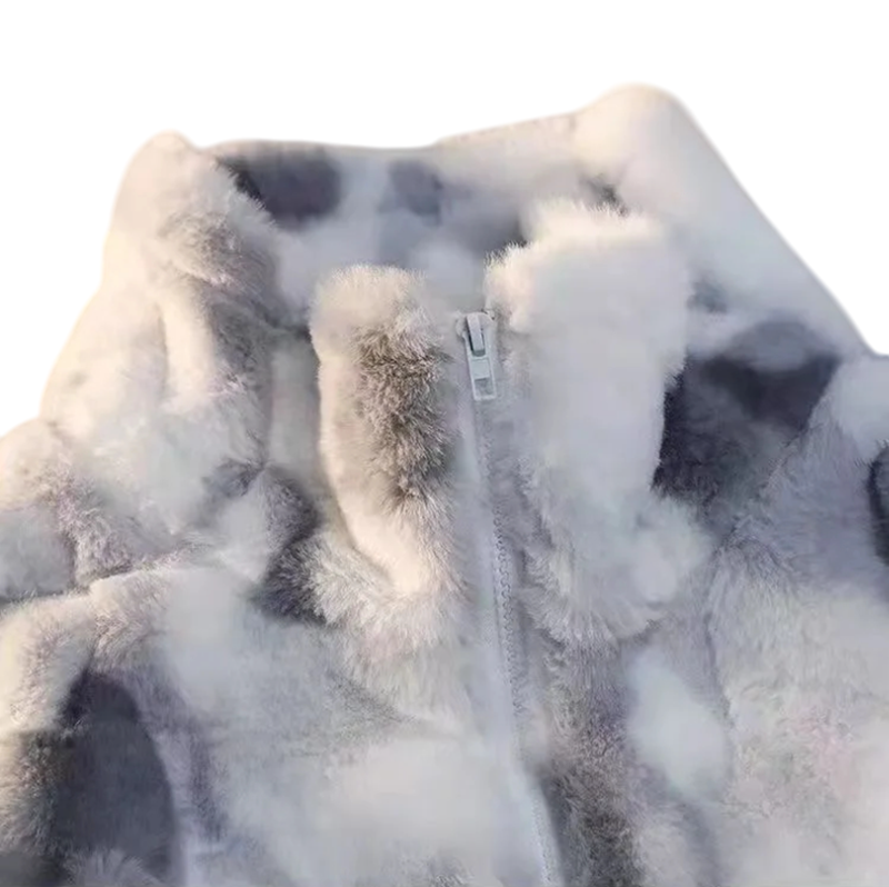 Varm vinterjacka med hög plyschkrage, dragkedja och praktiska fickor. Elegant, bekväm och lämplig för kalla vinterdagar. Fullständig beskrivning