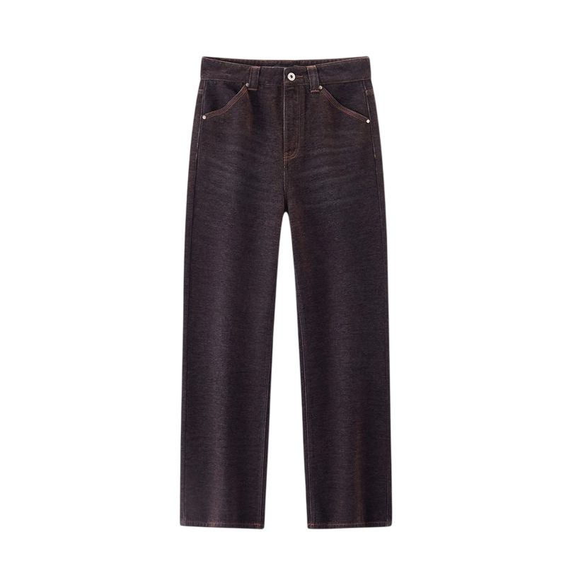 Dessa dams bruna jeans med fickor är en mångsidig del som inte bör saknas i någon garderob. Det lösare snittet ger tillräckligt med utrymme för bekväm rörelse och skapar samtidigt en modern silhuett. Bomullsmaterialet är skonsamt mot huden och ger en behaglig känsla vid användning. Om du letar efter bekväma bomullsbyxor i brunt som förenar enkelhet, kvalitet och funktionalitet, kommer denna modell att vara ett utmärkt val för din vardagsoutfit.