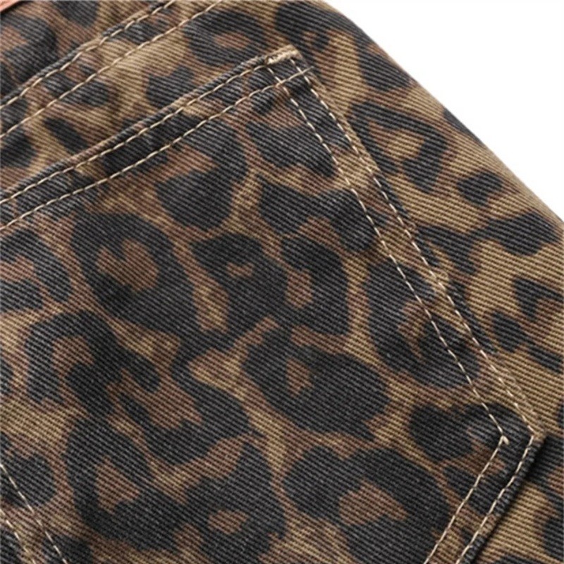Startsida Startsida Kläder och accessoarer Damkläder Damjeans Damsjeans Leopardmönster Fickor 100% Bomull Stiliga moderna byxor Djurtryck Avslappnad modebit