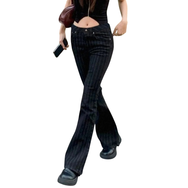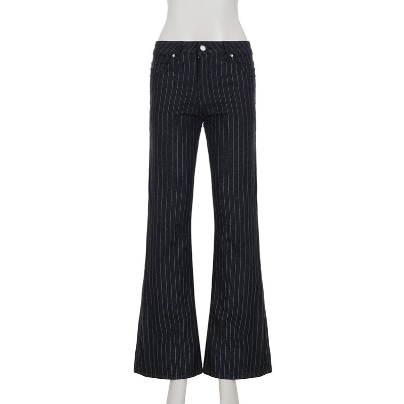 Damsjeans svarta med ränder Fickor Bomull Polyester Spandex Elastiska Bekväm passform Moderna slimbyxor för vardagsbruk