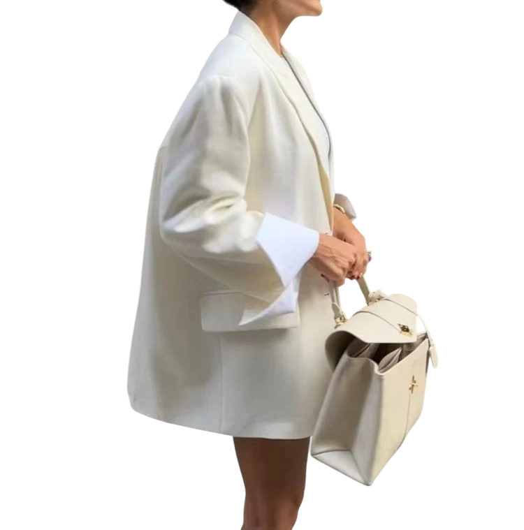 Damsk beige elegant jacka med krage och fickor Enfärgad jacka i polyester Stilig kavaj för kontoret, sociala evenemang och vardagsbruk