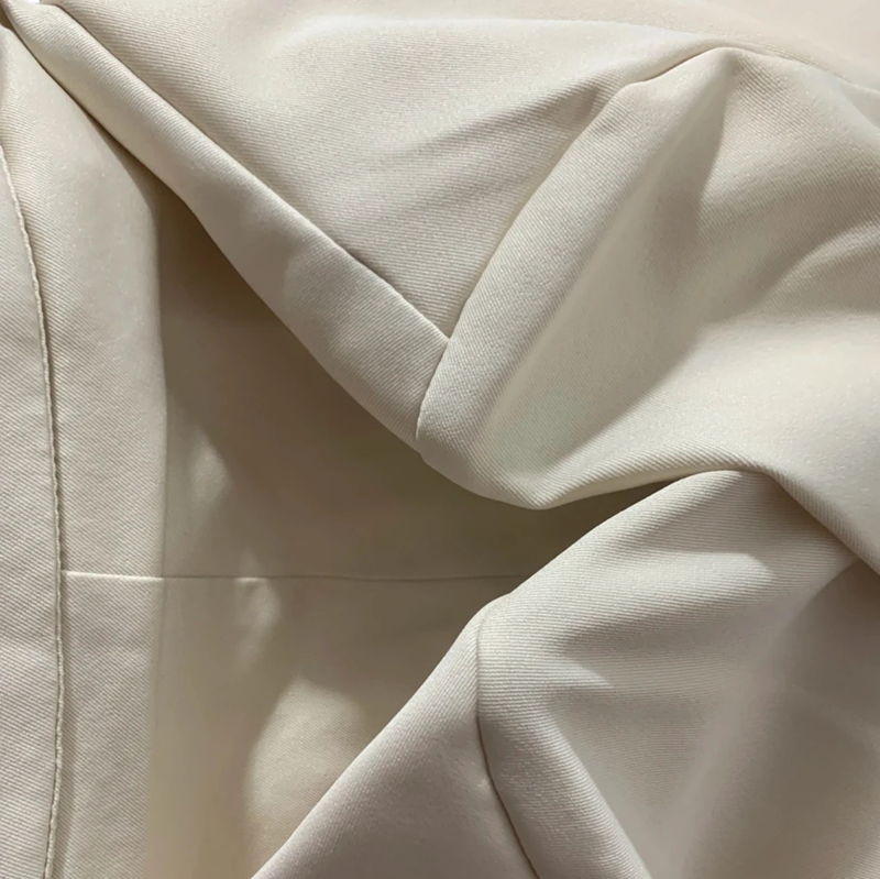 Elegant beige damjacka med krage och fickor tillverkad av högkvalitativ polyester. Utmärkt val för kontoret, formella tillställningar och fritid. Fullständig beskrivning