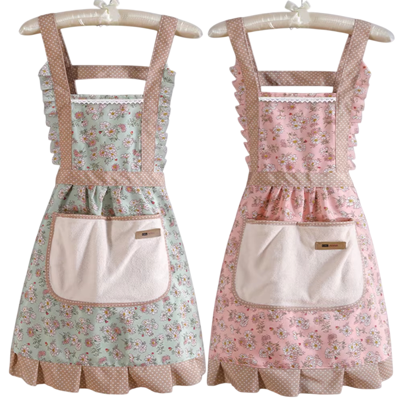 Damsk Blommig Köksskydd 90x70 cm Söt Justerbar Förkläde med Ficka för Matlagning Bakning Grillning Kockförkläde
