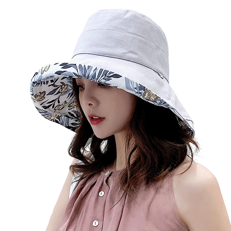 Damsk dubbelvändad hatt 56-58 cm Bomull och lin Sommarlätt hatt 2i1 Lätt och bekväm att bära Stilig modeaccessoar