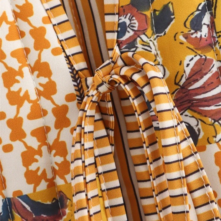 Startsida Startsida Kläder och accessoarer Damkläder Damjackor och kappor Damvästar Damsk gulorange väst med mönster och V-ringning Lätt väst med snörning i midjan Stilig polyester väst för sommar- och höstoutfit