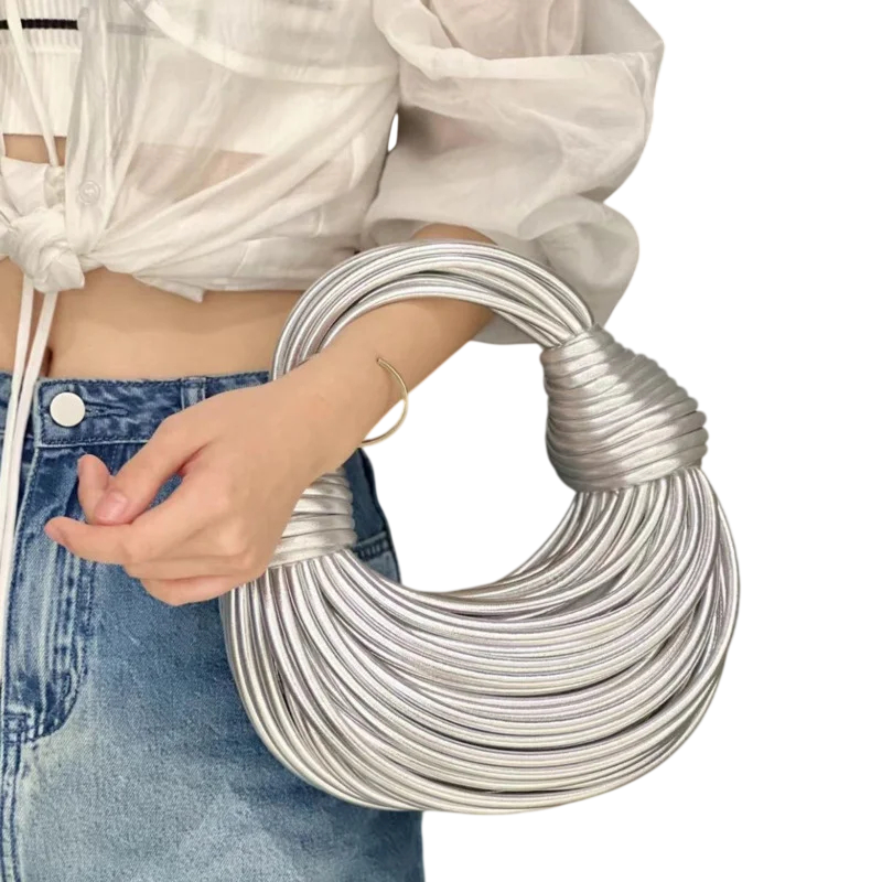 Lyxig nudelformad handväska med repknutning erbjuder en elegant look, rymlig design och en stilig accessoar för både stadskläder och fritidsoutfits. Fullständig beskrivning
