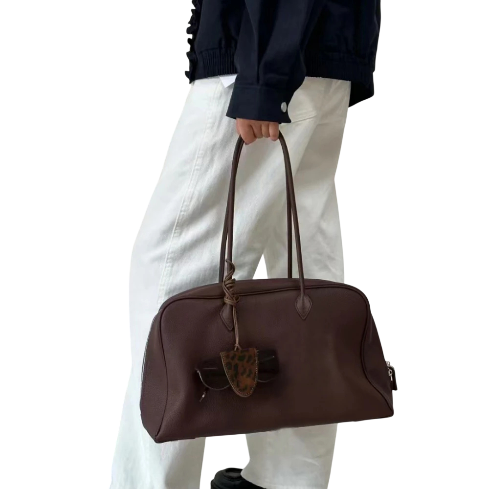Det läggs stor vikt vid noggrant hantverk och funktionell arrangemang som säkerställer överskådlighet av de förvarade sakerna. Lädermaterialet ger väskan styrka och ett elegant utseende som naturligt utvecklas över tid. Tack vare sin storlek framstår väskan balanserad och känns inte klumpig. Den är designad för att uppfylla de praktiska kraven för daglig användning. Väskan kommer att bli en pålitlig och stilfull accessoar i garderoben.