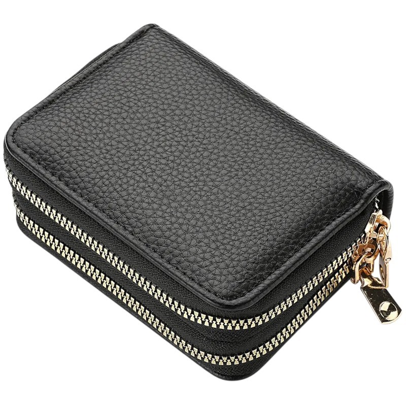 Damsk plånbok 11,5 x 8,5 x 4 cm Två fickor med dragkedja Mönstrad yta Polyuretanläder Kompakt design för daglig användning