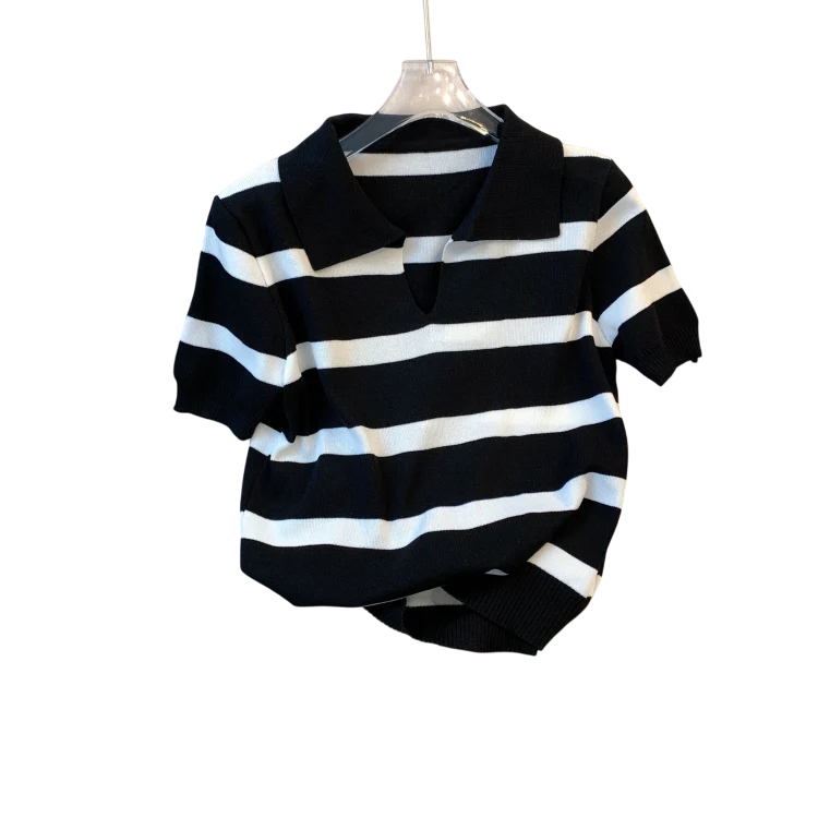 Damsk pristrädd croptröja med krage och korta ärmar Elegantisk topp av polyester i universell storlek Moderiktig pristrädd design