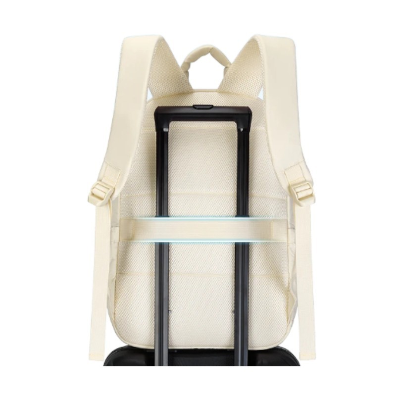 Ryggdelen är formad enligt den fysiologiska kurvan av ryggen, vilket hjälper till att fördela vikten jämnt. Ventilerad nätpanel tillsammans med en midjestöd stöder luftflödet och minskar svettning vid längre användning. Polstrade axelremmar anpassar sig efter kroppen och ökar komforten även vid full belastning. Smidiga dragkedjor möjliggör enkel åtkomst till de olika fickorna utan att fastna. Ryggsäcken är lämplig för staden, resor och fritidsaktiviteter.