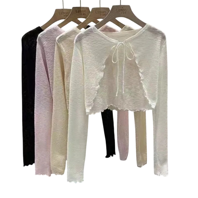 Damsk sommard cardigan med långa ärmar och snörning Enfärgad lätt tröja i polyester Elegant luftig topp för varma dagar