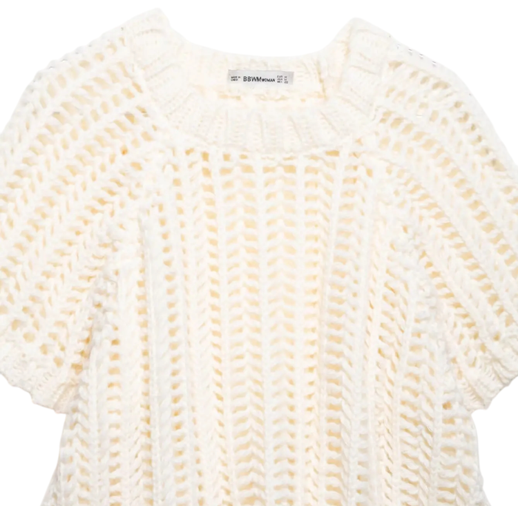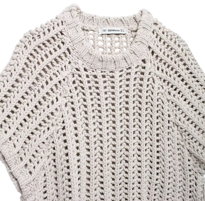 Stilren stickad topp med kort ärm och snörning på sidorna. Bekväm, elegant och lätt att kombinera för vardagliga och sommaroutfits. Fullständig beskrivning